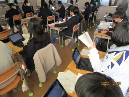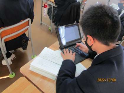 これはクラスメイトの創った童話を読んで感想をタブレット上で送っているところです。こんなことがすぐにできます。今までだったらどんなに時間と労力がいったでしょう。それが瞬時にできます。また、この授業では「送りました。」と声に出して言っていました。それがいいリズになって、教室全体の学習の雰囲気を盛り上げていました。