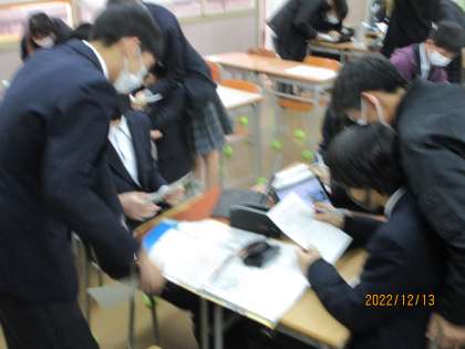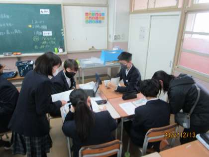公民の分野です。「財政の果たす役割」について調べて、自分の考えを交流しています。活動が豊富にあり、こういう授業をすることで「主体的に学ぶ態度」をよく見て取れますね。すばらしい。