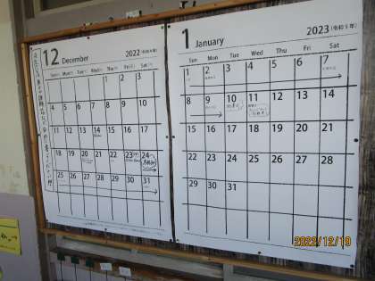 1年生のいる4階掲示板に貼ってありました。1年に関係する行事カレンダーです。分かりやすいです。