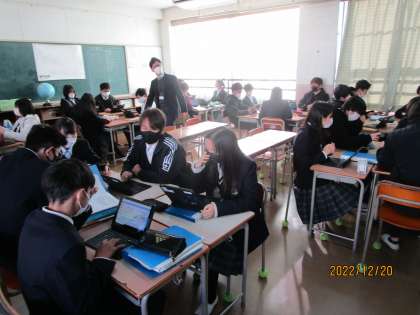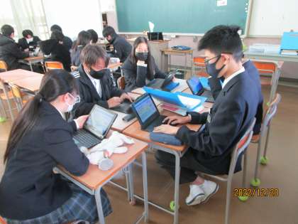 今日の社会は、財政と経済についてしらべたことを基に、自分の考えを発表する時間です。写真はPCにまとめている最終段階です。