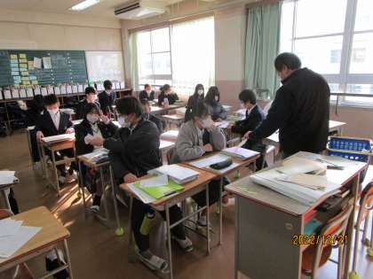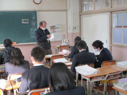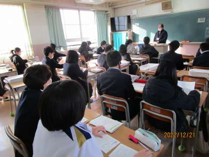 23日は終業式、多くの教科で冬休みの宿題について指示があります。この授業ではプリントが配付されていました。