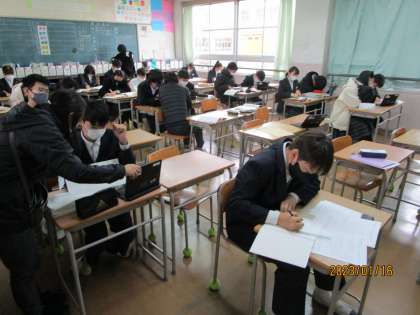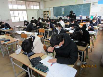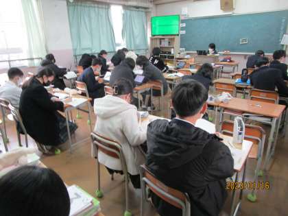 どの学年もすばらしいですが、今日のこの時間の自習態度もさすがに3年生です。よく勉強していました。すばらしい。