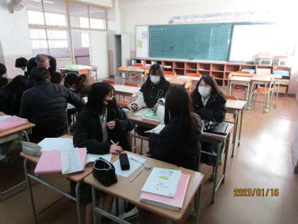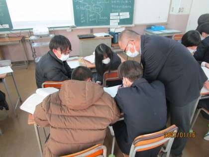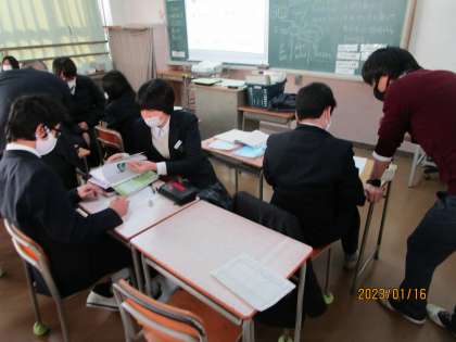 分割授業です。こちらも現在完了についての学習です。丁寧な説明を聞いたあとに自分で問題を解き始めました。こちらも学習班が有効に働いています。