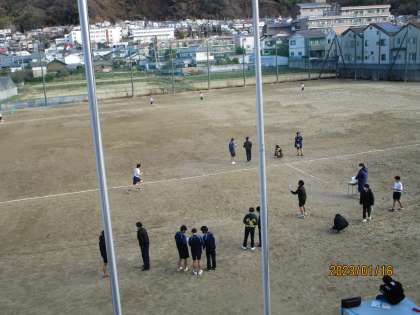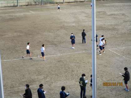 真冬の風物詩、体育で言えば持久走です。いよいよ始まりました。うれしいことに、応援の声「もうちょっとや。」「あと1周がんばれ。」などと声がかかります。がんばれ。