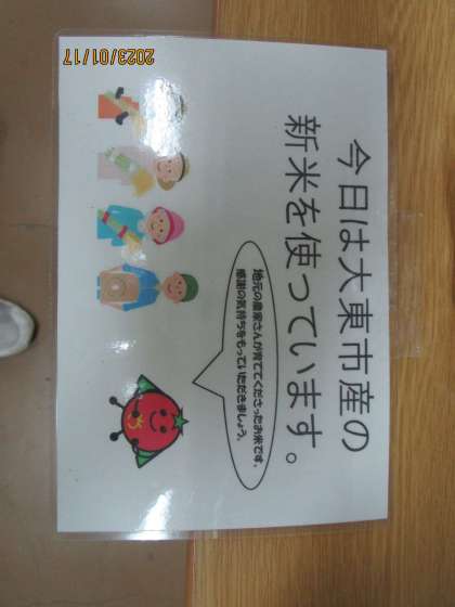 今日は大東市で生産された新米を頂きました。おいしい、おいしい。