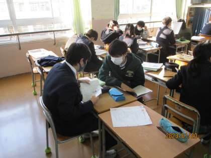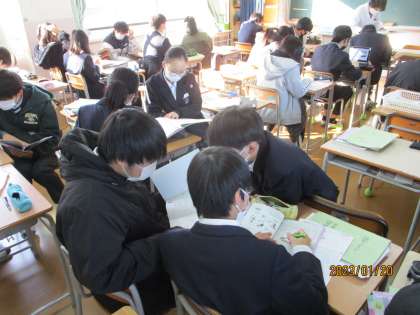 理科の問題と解いています。自分で考えて、分からないところを友人に聞いています。聞かれたらしっかり教えます。どちらも賢くなります。