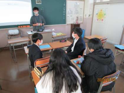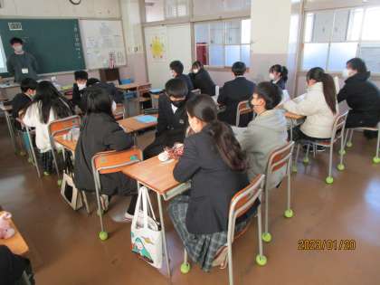 1年生が人権総合学習の3時間計画で「障がいとは」というテーまで勉強します。今日はその1時間めです。「見て分かる障がい」と「見て分からない障がい」について先生が話していました。