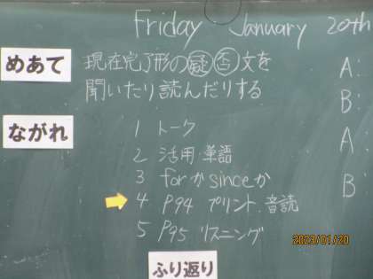 昔は現在完了といえば、中3で英語のハイライトシーン(もっとも盛り上がるところ)というイメージでしたが、現在は中2で学習します。学習班を活用しての授業でした。