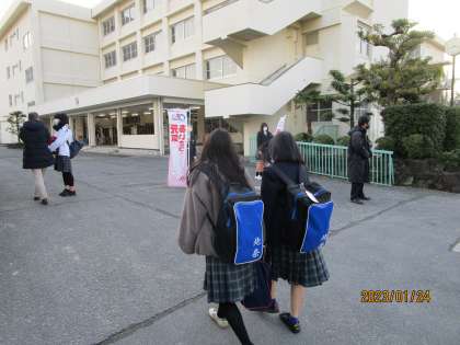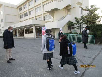 今日は今年の冬一番の寒さです。今朝は四條畷警察の方が巡回で校門に立っていただきました。特に事件があったわけではありません。お礼を何度も言いました。