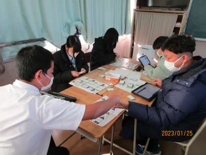 2年生は1月27日金曜日に百人一首を予定しています。練習と作戦を立てる時間です。