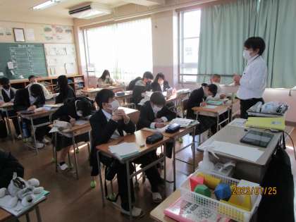 立体の図形の問題に取り組んでいます。流れとめあてのはっきりした、いわば設計図のしっかりした授業です。