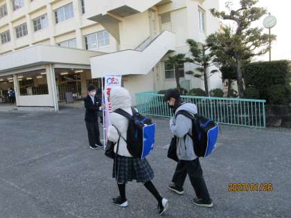 昨日より少しましですが、やはり今日も寒いです。こんな日にもあいさつ運動をありがとう。
