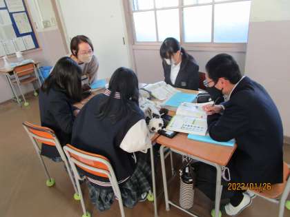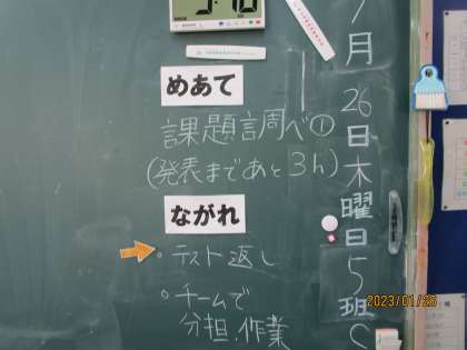 課題について調べ、チームで発表する流れのようです。こちらもタブレットで調べていました。