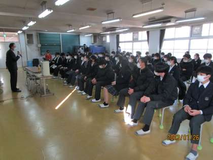 地域の方を講師にして人権総合学習についてお話を聞きました。とても大事な内容だったと思います。始めと終わりに学級委員さんがあいさつをしました。