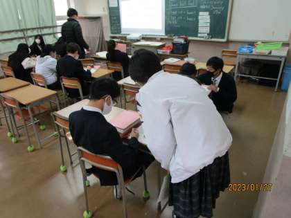 3単元のSについて復習していました。あちこちで「先生役」の生徒が熱心に教えていました。すばらしいです。
