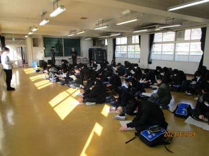 6限に明日の私立高校等への入試に向けての事前注意を行いました。体調を万全にととのえて受験に臨んでほしいです。