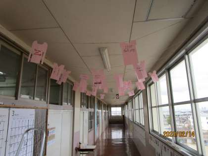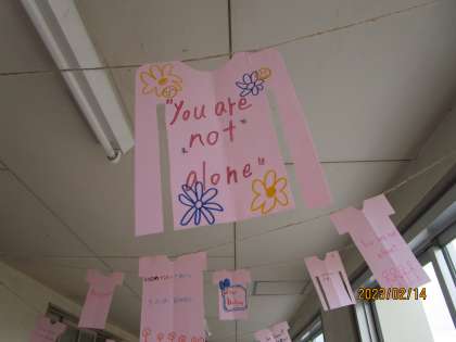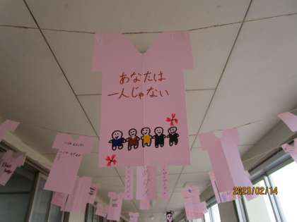 4階の1年生のフロアに掲示されました。気分が高揚してきました。いじめはあかん。