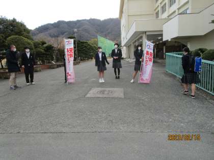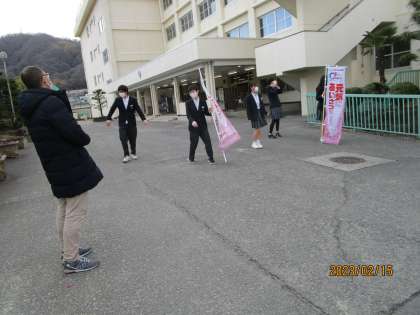 今朝は特別冷え込みのきつい朝でした。今日は2年生生活委員の人たちもあいさつ運動に参加です。ありがとう。