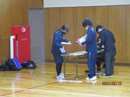 授業参観でチャレンジしました。2年生は合同で学習リレーといって、体育館の四隅にテーブルを置いて、そこにクイズを用意しておき、それに解答して次に人にバトンを渡すというイベントを行いました。