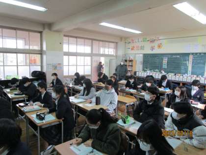 3年生のこの時期らしいです。公立高校の数学の問題を解いていました。先生が解説をしている場面です。