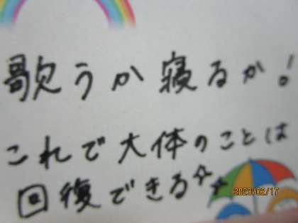 歌は多くの人が書いていましたね。声を出すと気持ちがいいです。お風呂、ネコに抱きつく、ええなあ。