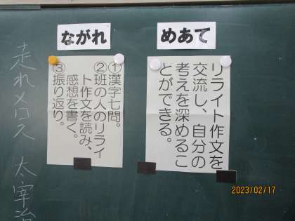 クラスメイトの書いた作文を回し読みして、コメントを入れます。そのコメントを自分で見ています。設計図のしっかりした授業でした。