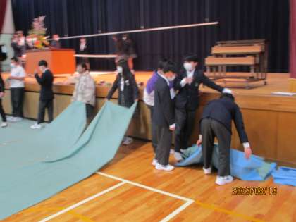 放課後に1年生が明日の卒業式の準備をしてくれました。よく動きます。ありがとう。