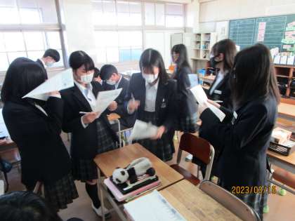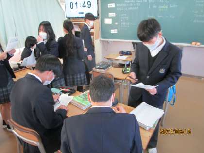 分割授業のもう一つのクラスです。英会話をペアで練習していました。活気がありました。