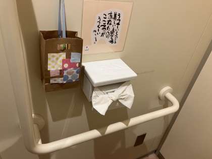 遅くなりましたが、こんな写真が届いています。これは、卒業式前日準備で2年生が体育館トイレのトイレッとペーパーに愛情をこめて「お祝いバージョン」に装飾しました。気持ちを込めてこうしました、とのことです。
