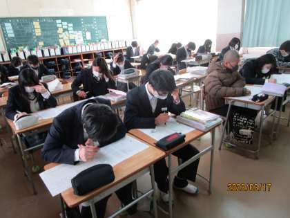 2年生の教科書を学び終えたのでしょう。今日の授業は高校入試問題にチャレンジしていました。