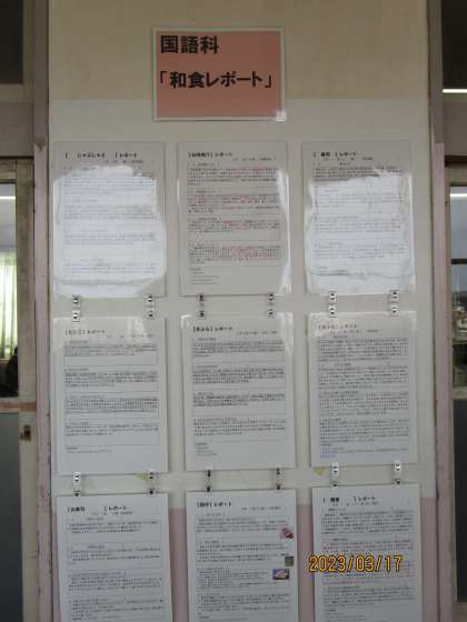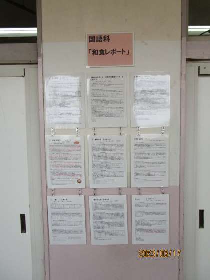 ここ数時間かけて和食レポートを国語の時間に作成していました。それが3階廊下に掲示されていました。