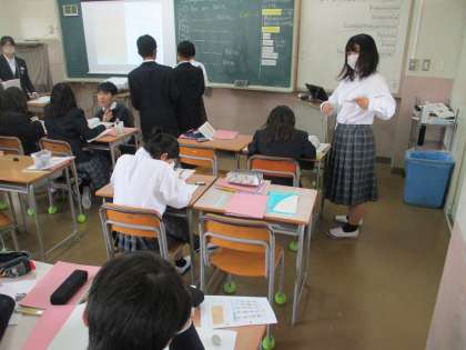 より高度な自己紹介をしようと言う授業です。もちろん、英語でです。