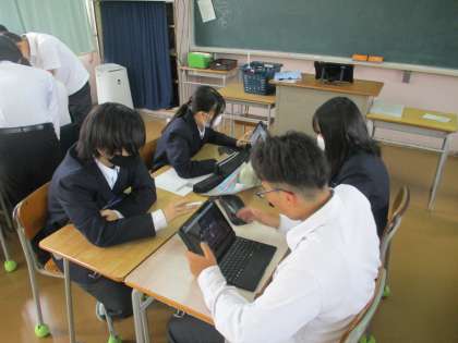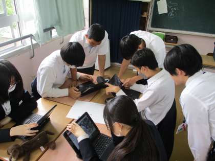 国際通りでの昼食を班で選んでいます。ガイドブックを見て、あれが食べたい、これが食べたいと言い合っています。一番楽しいときかもしれません。