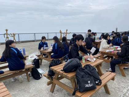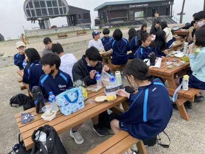 少し陽がさしてきました。ワイワイ言いながらたべる昼食、最高です。