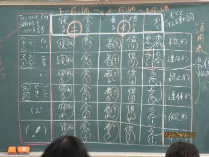 動詞の活用について勉強をしていました。五段活用、上一段活用、下一段活用と習いました。