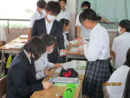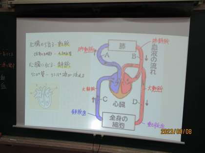 今日は心臓の働きを勉強しているようです。子どもたちが自分の考えを人に説明しています。