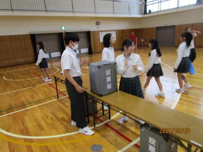 終始落ち着いた雰囲気の中、演説が終了し、整然と投票が進みました。選管の人たちもしっかりと役割を果たしていました。すばらしいと思います。
