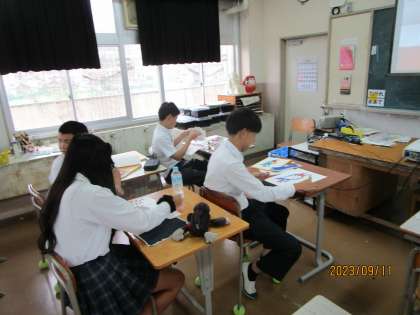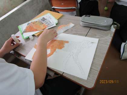 ちぎり絵を制作していました。動物をモチーフにしているようです。楽しそうです。