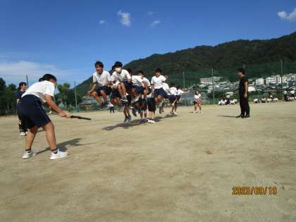 続いて北中ギネス(大繩跳び)の練習です。最高が4回でした。