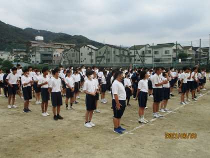 全体練習の終わりに生徒会役員さんより、「今日はきびきび動けていました。」と感想が述べられました。