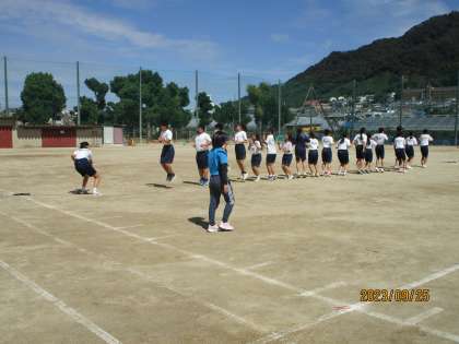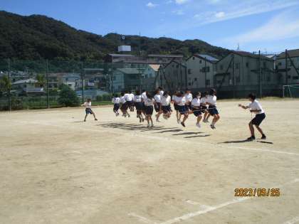 体育祭での北中ギネス(大繩跳び)の練習をしています。作戦タイムを取るクラスととにかく練習するクラスといろいろです。どちらの気持ちも分かります。