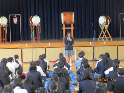 校則改正に向けての取り組み期間終了が迫ってきています。3年生の名札着用率も上がってきました。生徒会長より、なんとかがんばって校則改正を実現しようという話がありました。