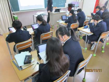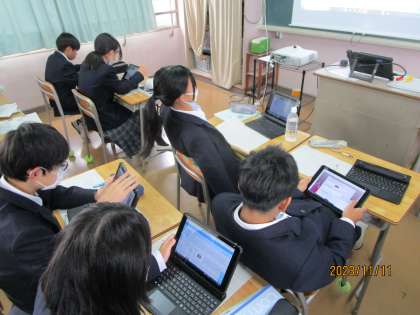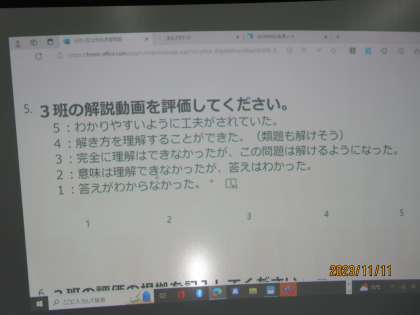 タブレットを使って、数学の問題を解く際の解説動画を作りました。この日はそれを見て、聞いて、修正点は内科確認をしていたように見えました。すべての授業を通して多くの保護者の方に来ていただきました。ありがとうございました。