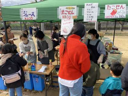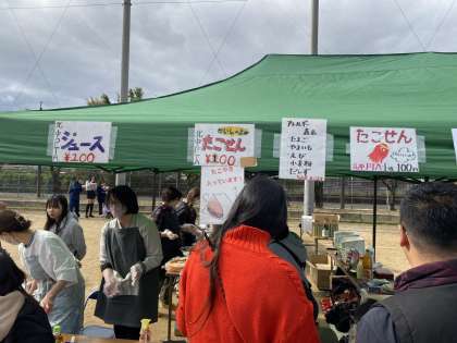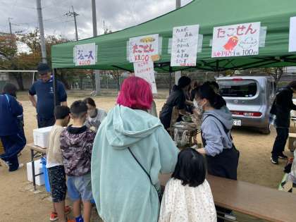 これはPTAのお店、タコせんとジュースのブースです。じわりじわりと売れていきました。こちらも完売しました。PTAの皆さま、本当にありがとうございました。