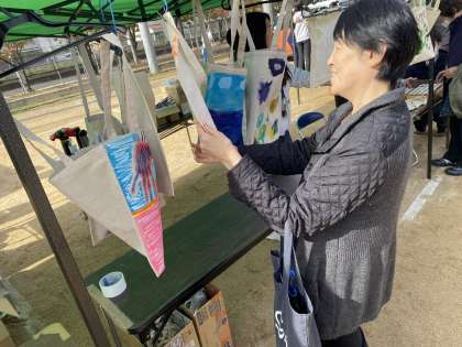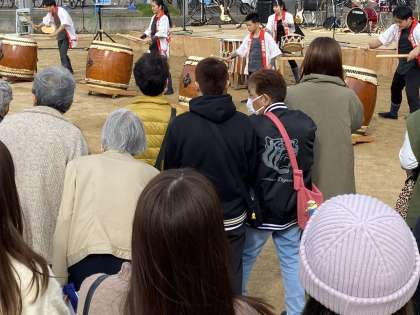太鼓集団魁の演奏はいつもながら、迫力満点です。本校の生徒も演奏していました。2枚め、3枚めはおおぞら学級の自分たちで作ったカバンです。とっても個性的なデザインです。大好きです。こちらも完売しました。