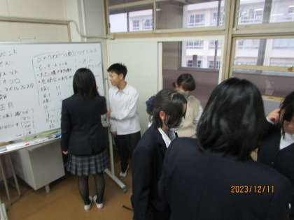 1枚めは生徒会役員たちです。ワイワイ話し合っていました。仲が良いので、いろいろな案が出てきやすいですね。2枚めは、体育委員会です。今度ある球技大会の打ち合わせを体育館で行っていました。