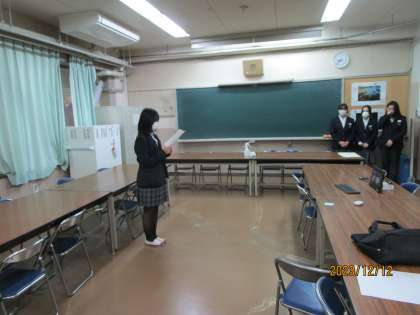 1枚めは生活委員会の代表がインフルエンザやコロナの予防の意味で手洗いについて話していました。正しい手洗いについてクイズをフォームズで出すそうです。楽しみです。2枚めは生徒会会長が生徒集会の終わりを告げています。3枚めは、生徒集会後、体育委員会が球技大会のことで打ち合わせを急きょしていました。