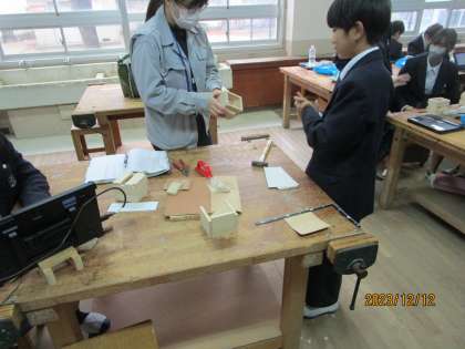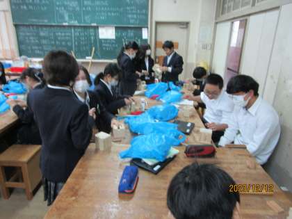 完成に近づいています。やすりを書けている人が多いです。ペンケースです。