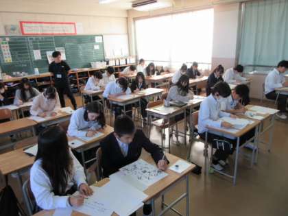 普段のシャーペンや鉛筆のようにはいかない筆使いを習得すべく、一生懸命とりくんでいました。