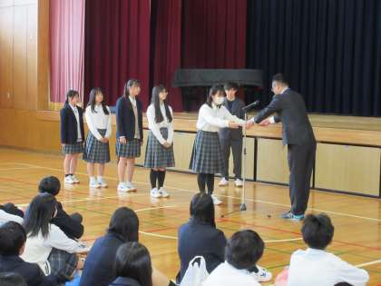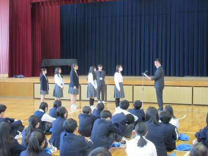 また、バドミントン部の表彰、教育実習生の紹介がありました。